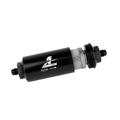 Aeromotive Stainless 6an Inline Fuel Filter 40 Micron 2in OD Black