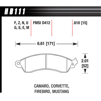 Hawk Brake Pads HB111N610 Performance Street GM/Ford