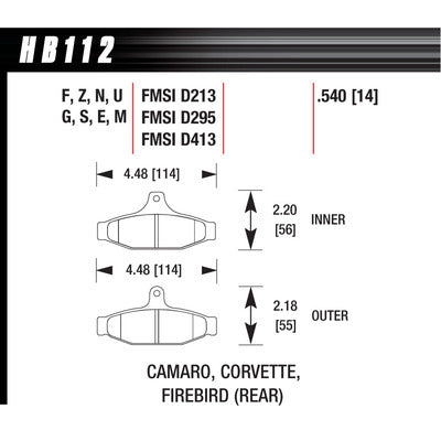Hawk Brake Pads HB112N540 Performance Street GM F-Body/Corvette