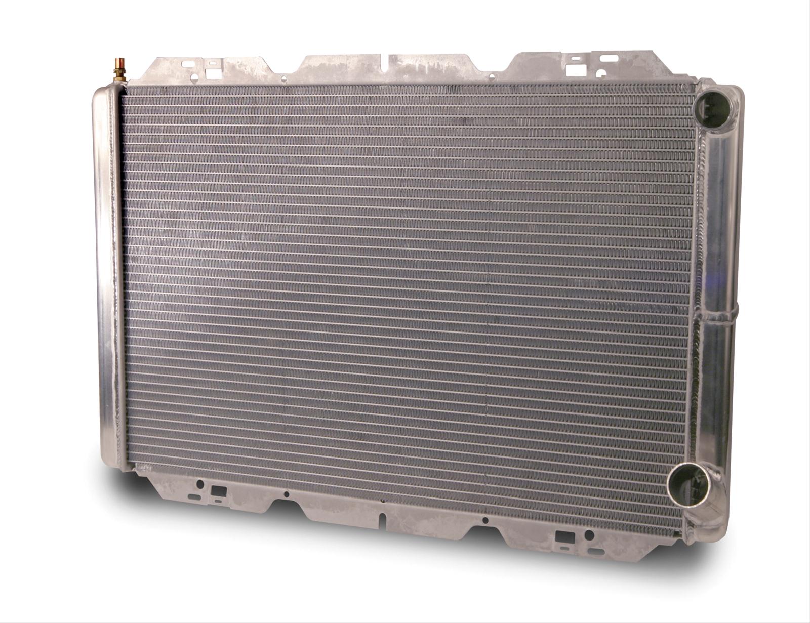 AFCO double pass GM style racing radiator 31" W x 19" T without filler neck offers great fit and performance, along with an optimized fin count ratio for maximum cooling efficiency. ALL AFCO radiators offer a furnace brazed sealed core without the use of epoxy, and are all 100% tested before shipping. AFCO Double Pass provide more cooling over standard type radiators, with less than 2 oz. of added weight. Common temperature drops are 10-20 degrees when replacing a standard configuration radiator of equal core size. Keeps your mind off the water temp and puts it onto the race track. Double pass radiators gain their efficiency by first passing the fluid over the top half of the radiator and then the bottom half, giving the radiator the ability to dissipate heat twice. AFCO uses an exclusive 360 degree TIG-welded baffle that splits the radiator core into two sections. This 360 degree baffle effectively creates two radiators out of one and assures that you won't have any coolant that has entered the radiator but never made it across the core. This is superior to utilizing silicone to seal internal baffles, or worse, a partial weld that allows the coolant to bypass the radiator core completely. 360 Degree Welded - Internal baffle ensures no "short cuts" past the baffle due to internal leaks. Installation Instructions included.