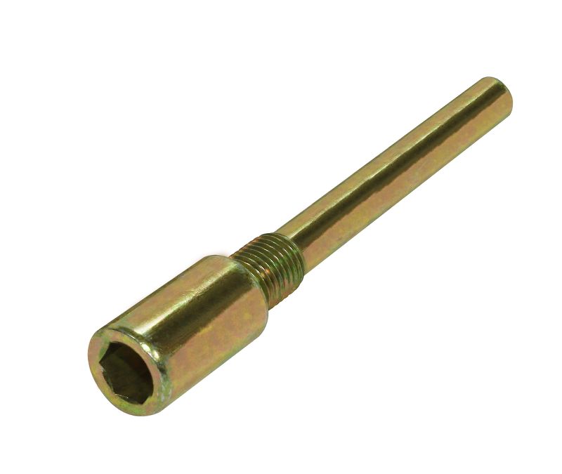 The steel caliper bolt is designed to replace a GM stock caliper bolt. The caliper bolt is designed to eliminate the need for the stock spacer on the caliper bolt, increasing strength and durability. The bolt is 4.4 inches long and is made of high quality steel that is gold zinc coated to improve wear and durability. It is thread with a standard 7/16-20 UNF and uses a 3/8 hex wrench to install.