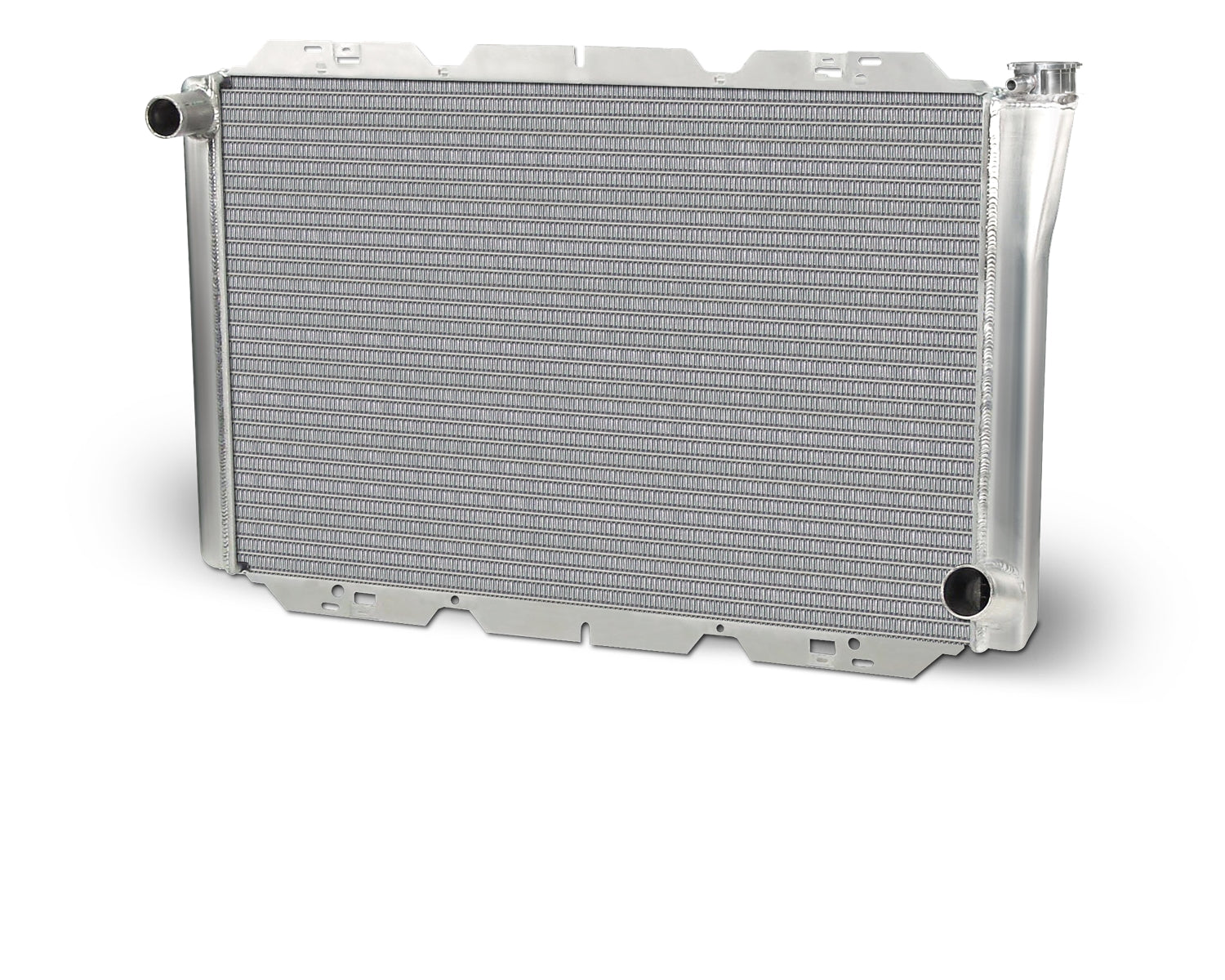 AFCO single pass GM style racing radiator 31" W x 19" T offers great fit and performance, along with an optimized fin count ratio for maximum cooling efficiency. ALL AFCO radiators offer a furnace brazed sealed core without the use of epoxy, and are all 100% tested before shipping.
