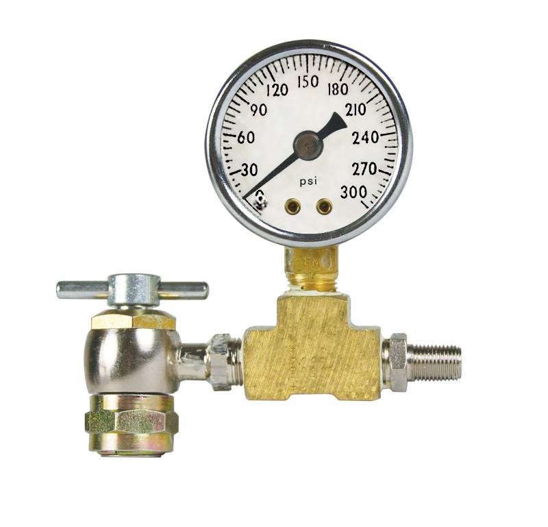 Monitor the amount of air in your AFCO shocks with AFCO Racing monotube inflation gauges. They include an easy-to-read analog gauge for setting the right pressure, a special air valve fitting, and a pressure relief fitting to remove any unwanted air pressure.