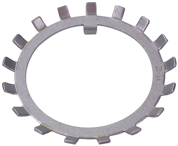 The steel lock washer is designed to be used on a grand national style rear end to lock the spindle nut in place. It is made of mild steel and coated with a corrosion resistant coating to prevent rust.