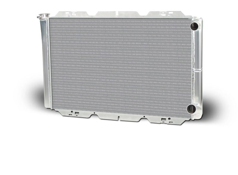 AFCO Double Pass Radiators provide more cooling over standard type radiators, with less than 2 oz. of added weight. Common temperature drops are 10-20 degrees when replacing a standard configuration radiator of equal core size. Double pass radiators gain their efficiency by first passing the fluid over the top half of the radiator and then the bottom half, giving the radiator the ability to dissipate heat twice. AFCO uses an exclusive 360 degree TIG-welded baffle that splits the radiator core into two sections. This 360 degree baffle effectively creates two radiators out of one and assures that you won’t have any coolant that has entered the radiator but never made it across the core. Installation instructions included.
