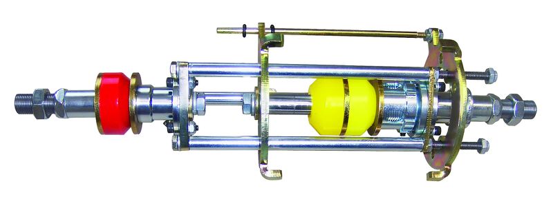Used by champion drivers! The “Three Stage” torque link provides adjustable progressive action for ultimate torque control and traction. Torque is absorbed by the coil spring to provide initial forward bite. As engine torque increases, the poly bushings engage to increase torque to the rear tires. Engagement point of the poly bushings can be adjusted independently from the coil spring to allow for changing track conditions. Due to its unique twin shaft design, the engine side and brake side operate independently. This allows corner entry & exit to be tuned separately. Bushing/spring pre-load is always maintained. Also the brake bushing works more effectively because it’s not loaded with engine spring pre-load. The car turns better during deceleration as a result.
