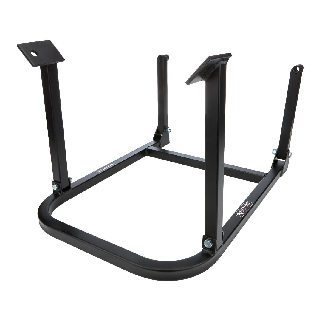 Engine cradle conveniently folds down to less than 4" tall for storage under a work bench or in a cabinet when not in use. Designed for use on popular SB Chevy engines weighing up to 500 lbs. Cradle does not have provisions for adding caster wheels.