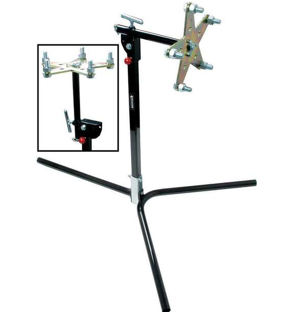 Steel tire prep stand is a must when grooving, siping, grinding or even cleaning tires. Bolts together, and the pivoting head eases initial tire mount. A locking T-handle, secures the head assembly. Can be used with 5x5 or Wide 5 wheels.