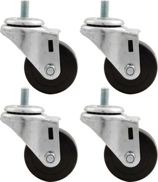 Hard rubber wheel kits may be mounted to Allstar engine cradles ALL10130 thru ALL10159. Kits are also available with locking wheels, ideal for storing spare engines in trailer. Standard duty kits feature 3/8" studs and heavy duty models use 1/2" studs. Four wheels per kit.