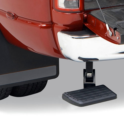 The BedStep is a retractable bumper step to help you to gain access to the bed of your truck. You can step on it, and it will help you save your knee and back. Strong and rugged, this non-slip, retractable bumper step quickly flips down with the nudge of a foot providing a faster, easier and safer way to load or unload the cargo from your pick-up truck. It supports up to 300 pounds. The frame mounts under the rear bumper so it works even with an open tailgate or when towing.