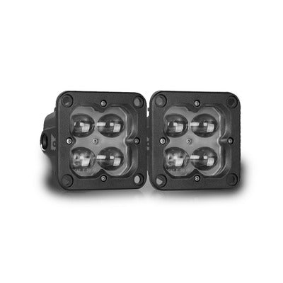 LED Light Assembly - Concept Series Pod - Fog - 20 Watts - 4 White LED - White Lens - 3 in Square - Flush Mount - Hardware / Wiring Harness Included - Aluminum - Black Anodized - Universal - Pair - MPN: 41112