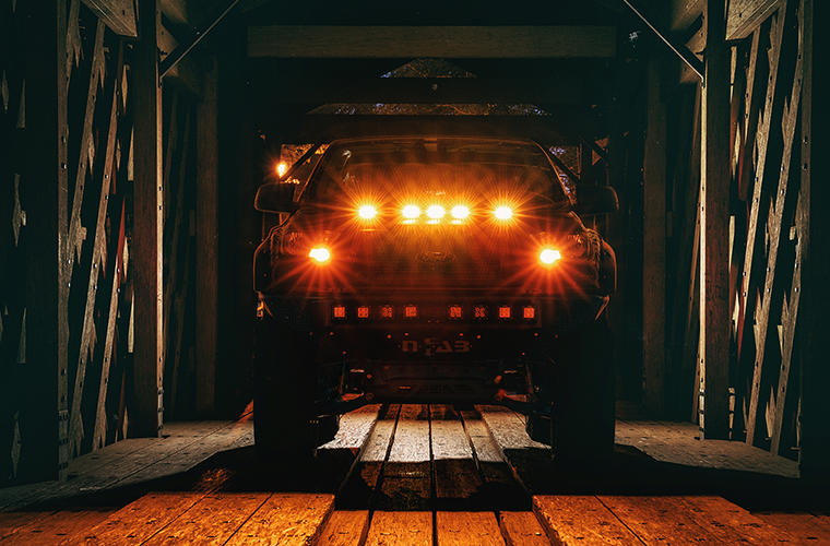 - Features a light strip with five amber LED marker lights, powered by tapping into the vehicle’s existing parking lights.