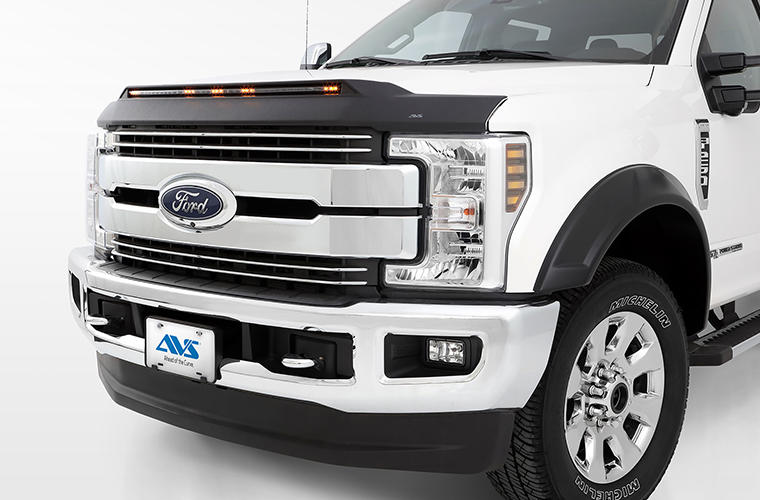 It's the strongest defense a hood can mount, with a bold new look that's built to last. The Aeroskin ® LightShield ™ Hood Protector features ultra-rugged, Dura-Flex ® 2000 TPO construction that deflects bugs, rocks, and debris. Its five amber LED running lights are surrounded by a textured matte black finish. Installs in minutes with included 3M automotive adhesive, or mechanical fasteners, seamlessly integrates with your existing parking lights. Carwash safe. Warrantied against warping, cracking or factory defects for life. Proudly made in the USA with global materials.