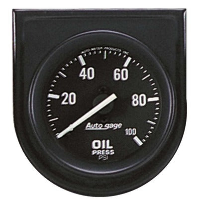 Oil Pressure Gauge - Auto Gage - 0-100 psi - Mechanical - Analog - 2-1/16 in Diameter - Mounting Panel - Black Face - Each - MPN: 2332