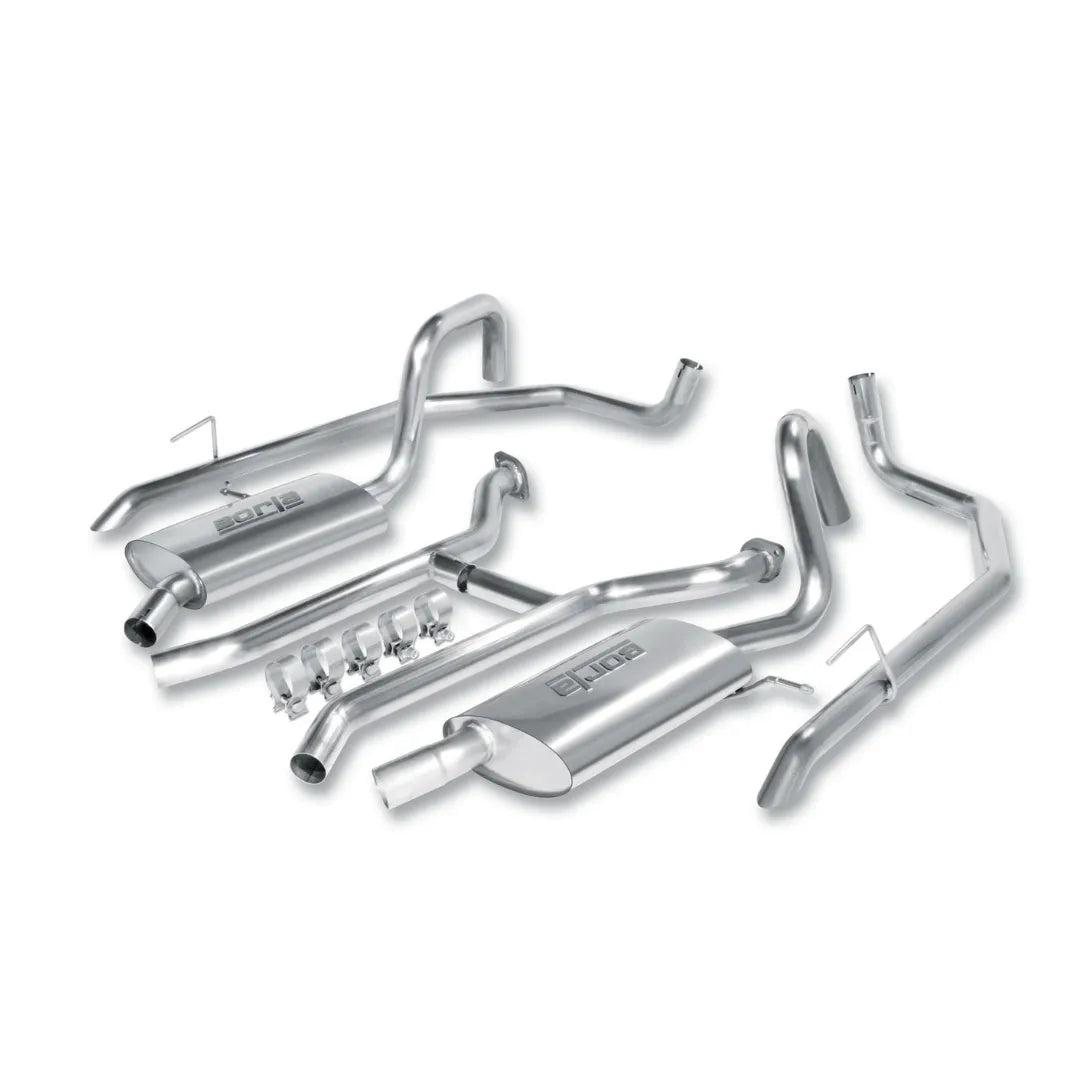 Features 2" brushed T-304 stainless steel turn down tips. BORLA® Cat-Back™ & Axle-Back exhaust systems feature patented straight-through and multi-core technology to unleash hidden horsepower. Increased exhaust velocity adds power, driving excitement, fuel economy, and the distinctive BORLA®: Sound of Power respected by motoring enthusiasts everywhere.