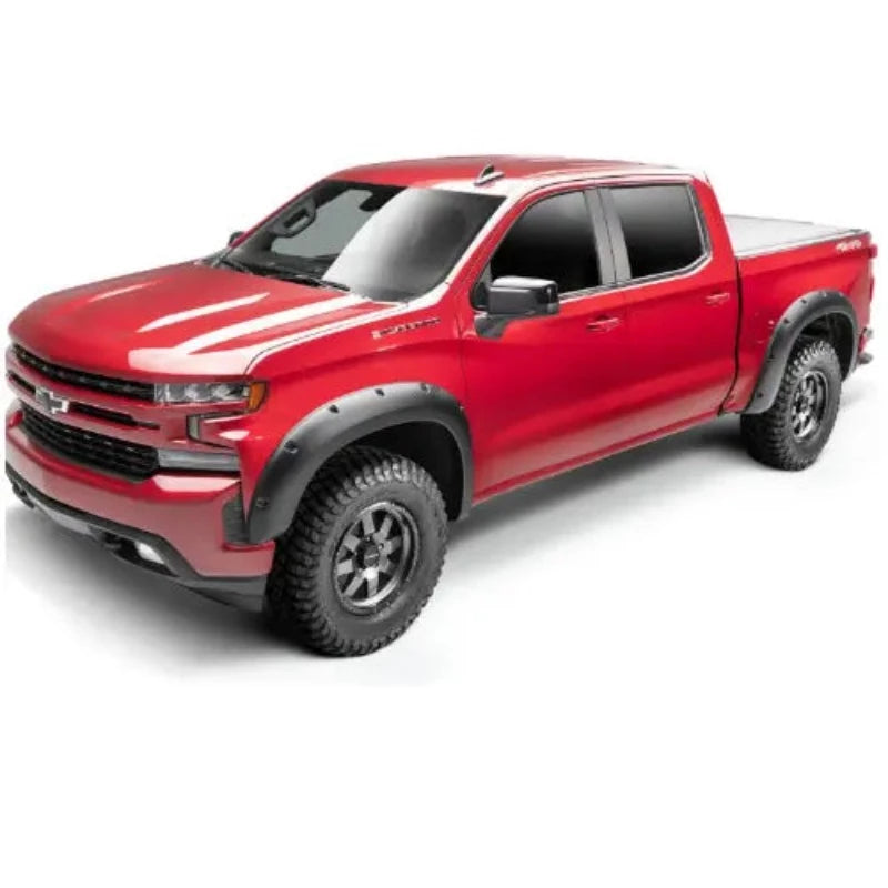 Flare set is made from rugged ABS with a textured finish that is complemented with all-black rivet hardware. The bolt-on design offers added protection when using over-sized tires.