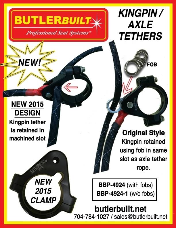 King pin tether from ButlerBuilt is required by World of Outlaws and many other Sprint Car sanctioning bodies and tracks. It hooks to the king pins so that they will remain with the race car in the event of a crash.