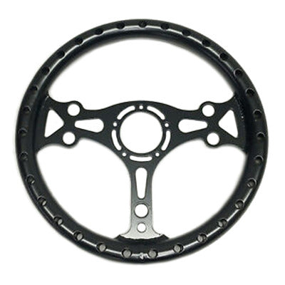 Weighing just 13.6 ozs., this black powder-coated 13" diameter aluminum steering wheel offers placement for up to five buttons. It mounts to any standard 5-bolt quick release hub. It may also be adapted to 3-bolt hub with the 4705 (part # CCE4705) adapter.