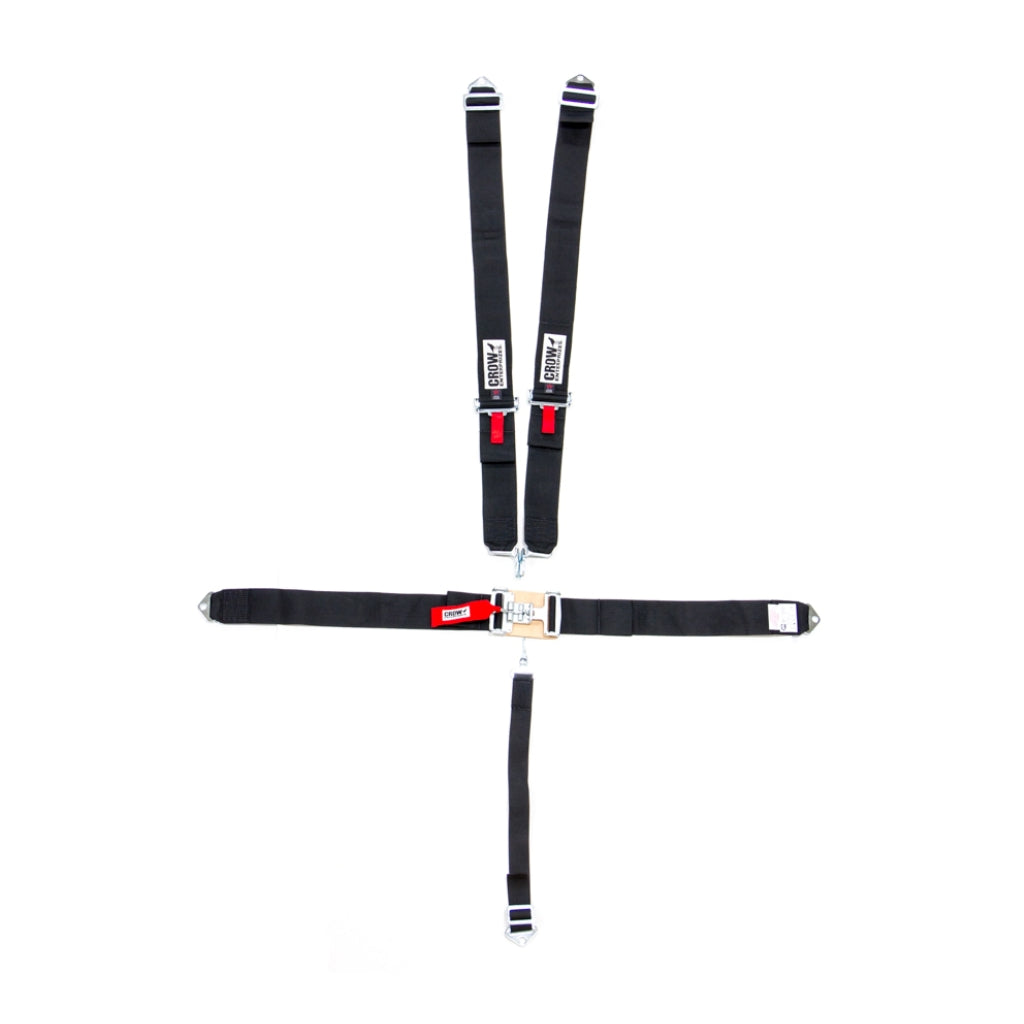 Harness - 5 Point - Latch and Link - SFI 16.1 - 55 in Length - Pull Down Adjust - Bolt-On / Wrap Around - Individual Harness - Black - Kit - Brand: Crow Safety Gear - Part Number: 11064