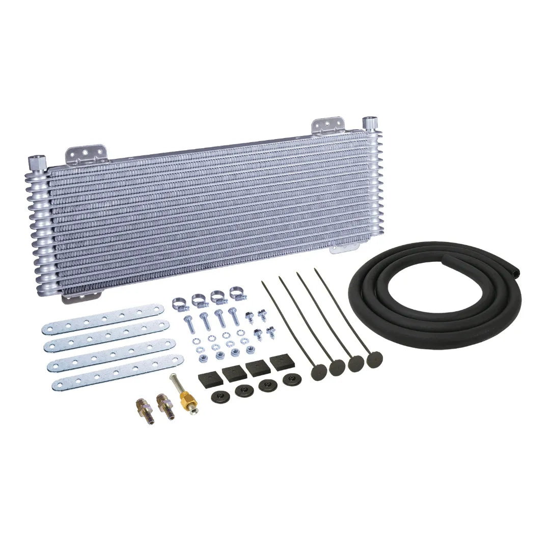 Fluid Cooler, 9500 Series, 22.75 x 9.25 x 1.25 in, Plate and Fin Type, 5/8-18 in Inverted Flare Female Inlet / Outlet, Fitting / Hardware / Hose, Aluminum, Clear Anodized, Universal, Kit