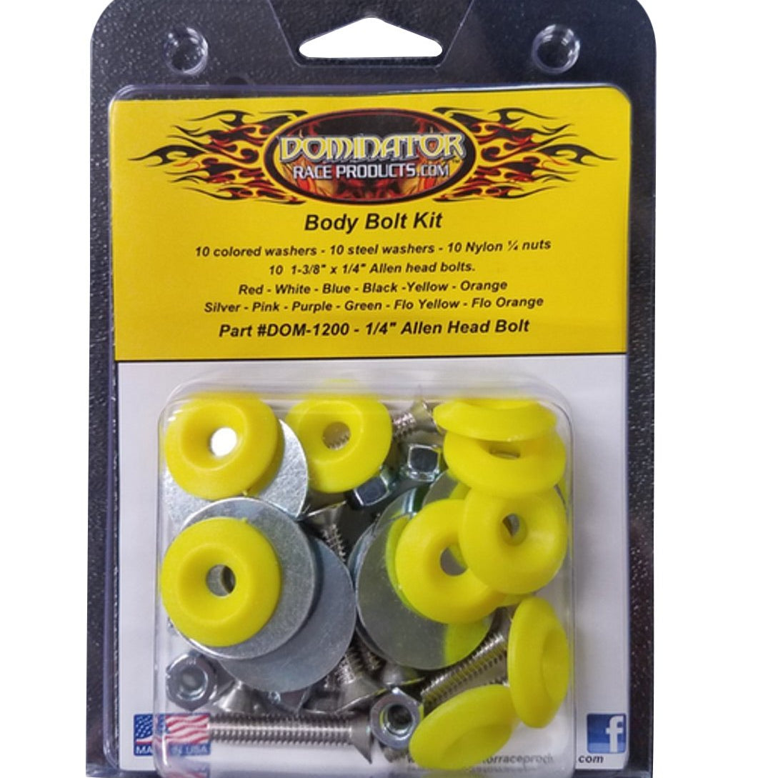 Countersunk Bolt Kit - 1/4-20 in Thread - 1.75 in Long - Allen Head - Countersunk Washers / Nuts - Plastic / Steel - Fluorescent Yellow - Set of 10 - Brand: Dominator Race Products - Part Number: 1200-A-FLOYE