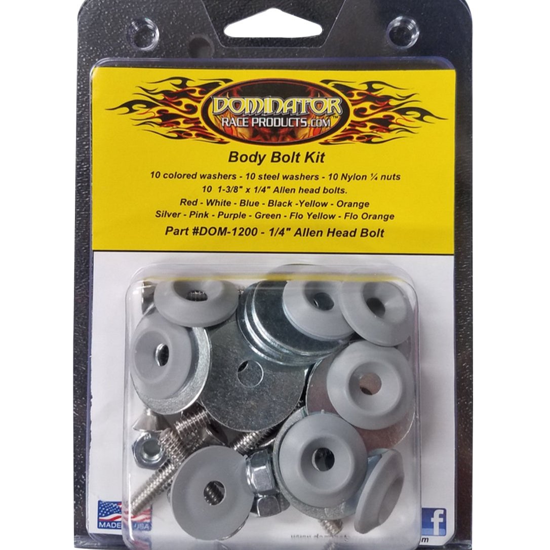 Countersunk Bolt Kit - 1/4-20 in Thread - 1.75 in Long - Allen Head - Countersunk Washers / Nuts - Plastic / Steel - Gray - Set of 10 - Brand: Dominator Race Products - Part Number: 1200-A-GRY