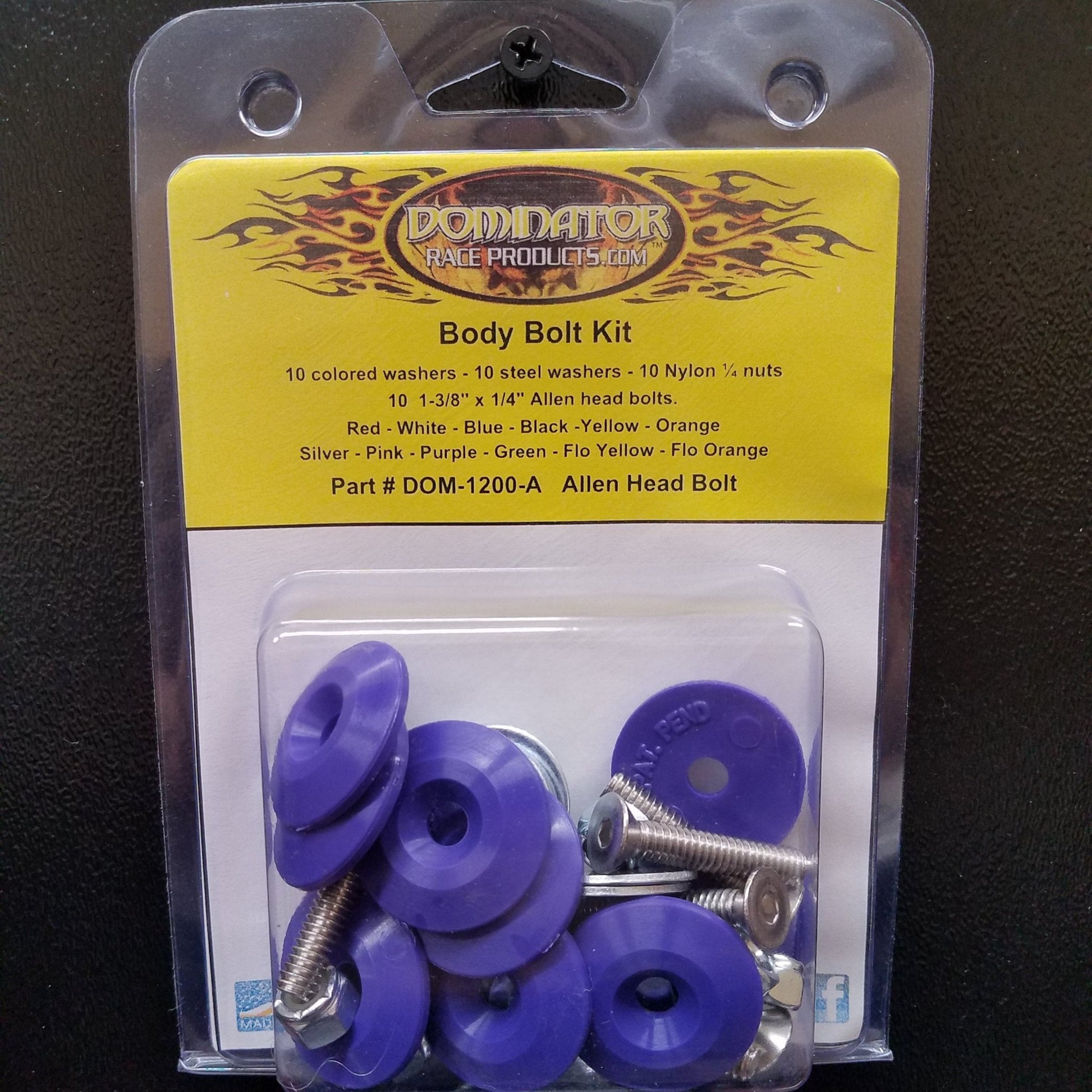 Countersunk Bolt Kit - 1/4-20 in Thread - 1.75 in Long - Allen Head - Countersunk Washers / Nuts - Plastic / Steel - Purple - Set of 10