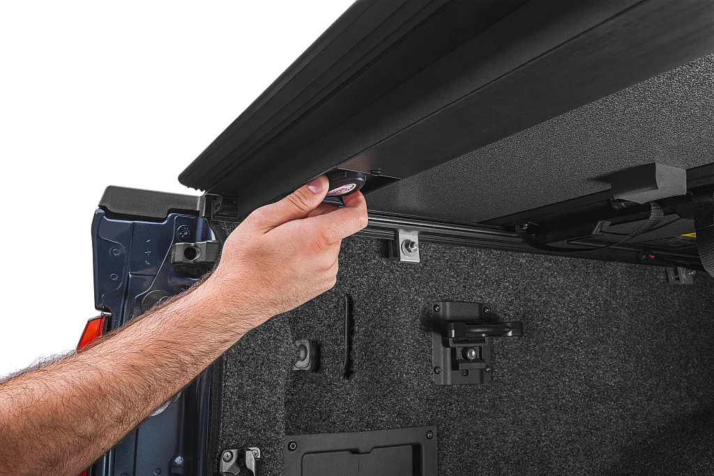 Unique among tri-fold covers, the ALX uses a simple "twist & lift" function to open and close the cover without the use of tailgate clamps.