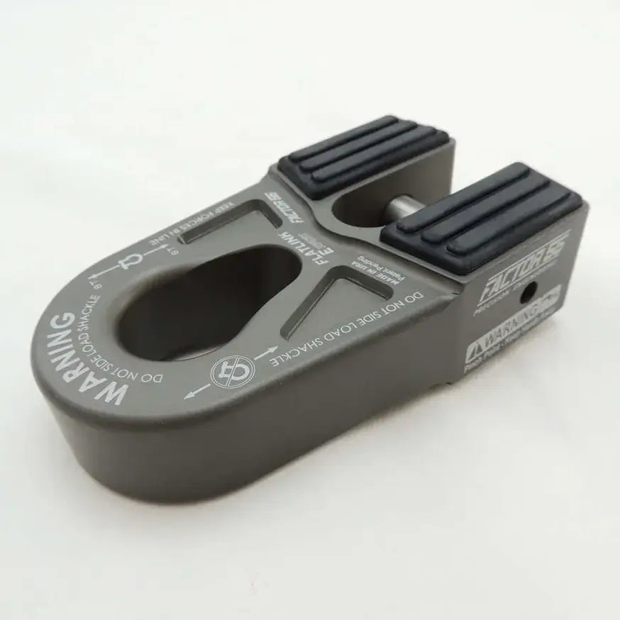 FlatLink shackle mount due to the shackle pin mounting constraint. For the recreational off roader we highly recommend the safer standard FlatLink product, not the FlatLink E. This way the winch operator does not have to monitor whether the shackle may have shifted and rotated in the recovery tackle.