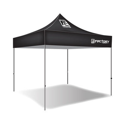 Factory Canopies are pro grade canopies that are fire and water resistant. These canopies combine lightweight, durable aluminum hardware with attractive black, fire retardant and weather resistant top covers. The user-friendly design allows quick, easy set-up with telescopic legs that snap into place with the click of a button. An optional wheeled canopy case to make transportation is sold separately.