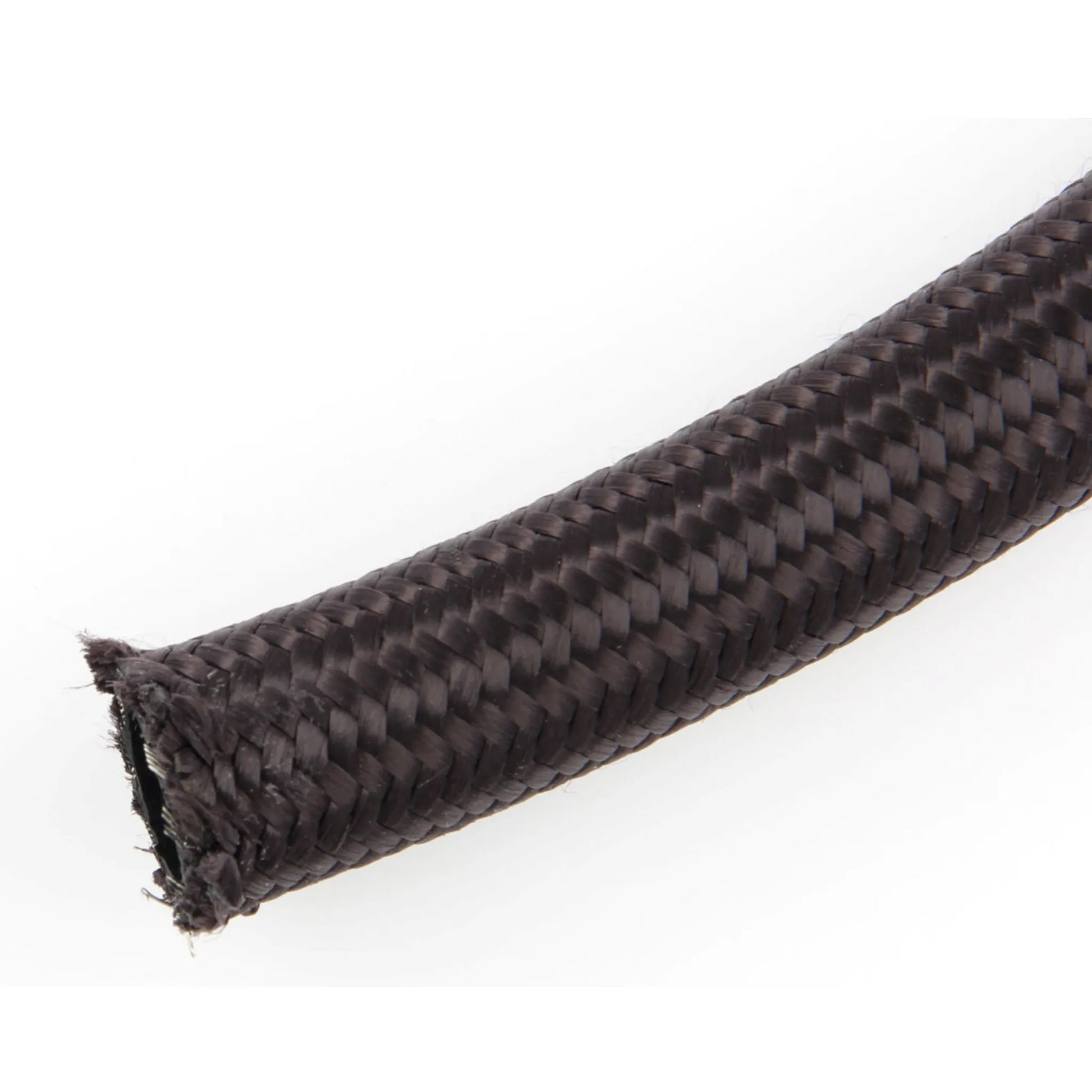 Designed for use with FPS Series 2000 hose ends and FPS sport-crimp hose ends, black nylon race hose incorporates a synthetic rubber core that has an operating range of -40°F to 300°F and up to 500 PSI of working pressure, allowing for use with most oils, coolants, and fuels. Lightweight and durable, braided nylon hose is reinforced with a single braid of bright corrosion-resistant 302 stainless steel wire braid for added strength.