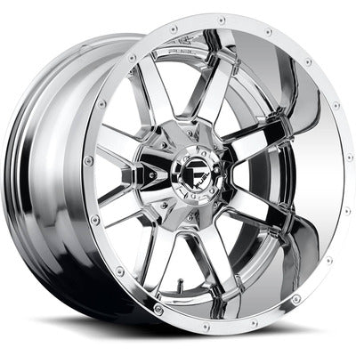 Fuel Off-Road Maverick D610 Series gloss black with milled accents wheels use a deep lip and machined accents to provide you with a tough look. They feature 1-piece aluminum construction, a durable black finish, and silver rivets around the outer lip.