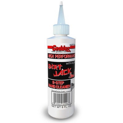 Geddexx Dirt Jack Hand Cleaner is sold in 8 oz bottles.