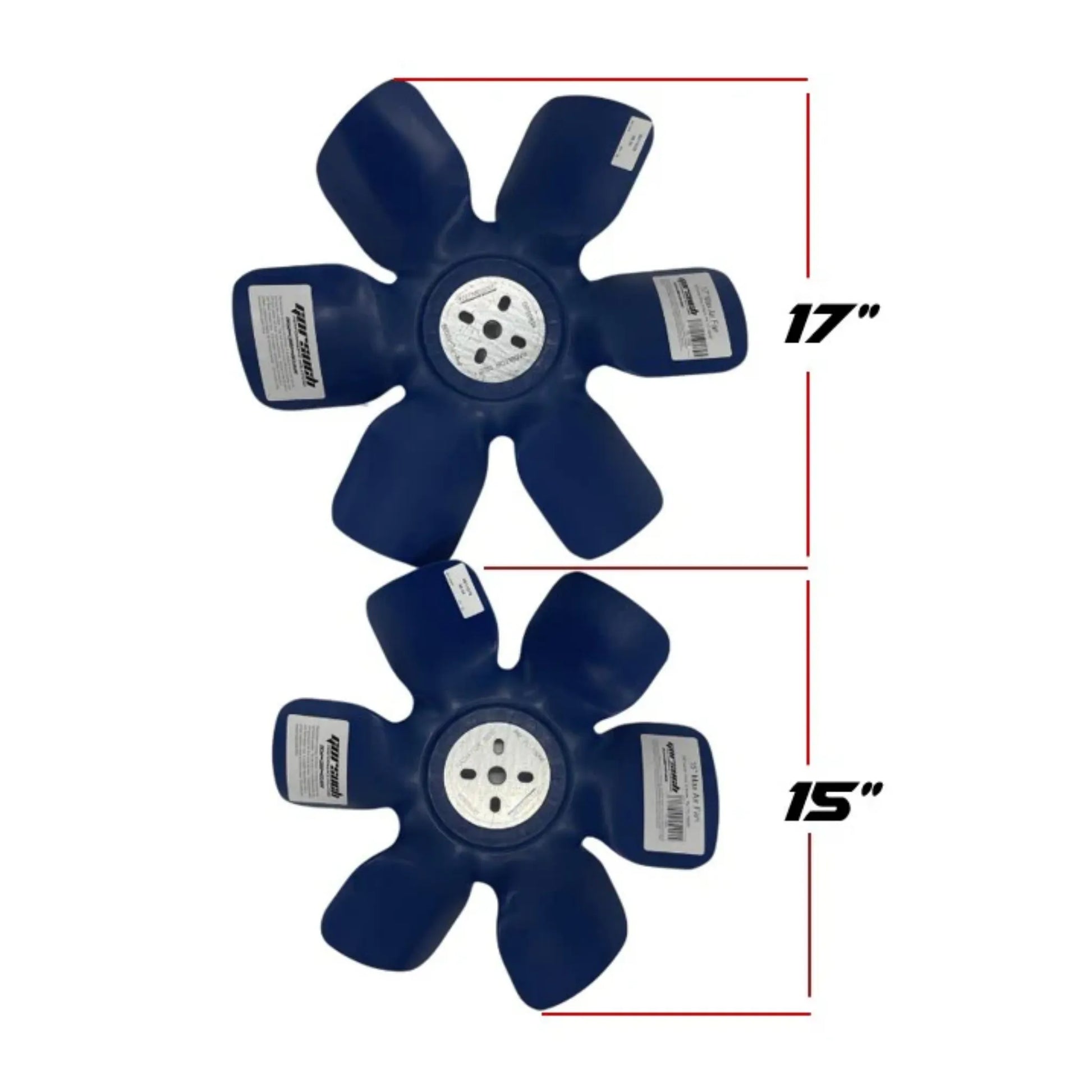 Mechanical Cooling Fan - Max Air - 17 in Fan - 6 Blade - 5/8 in Pilot - Universal Bolt Pattern - Aluminum Hub / Plastic Blades - Blue - Sold as Each - Brand: Gorsuch Performance Solutions - Part Number: FC-10000