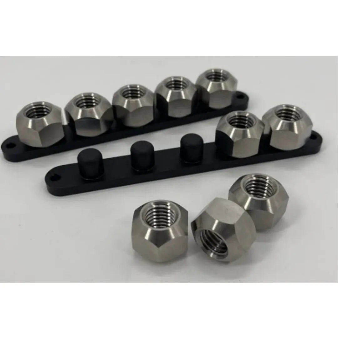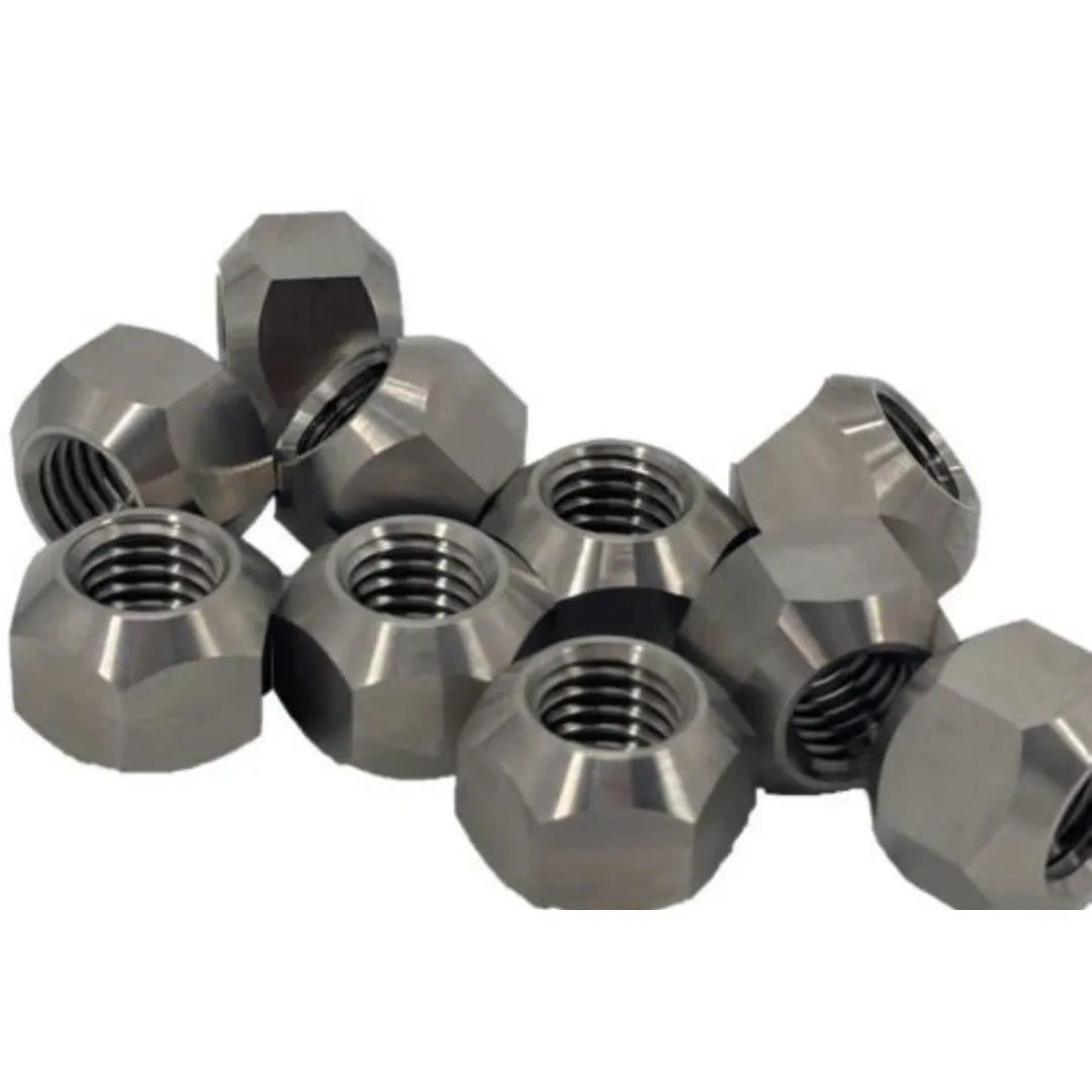 These double-sided Titanium lug nuts from GPS feature 5/8" coarse threading and are available for purchase individually or in sets of 20 for a car. These lug nuts are lightweight yet very sturdy, and unlike aluminum lug nuts, they will not cause corrosion or galling on aluminum wheels. Additionally, they are more durable and have a longer lifespan than their aluminum counterparts. To further prolong their lifespan, it is recommended to apply a small amount of anti-seize to the threads.