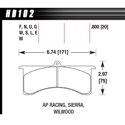 Hawk Brake Pads HB102U800 Wilwood GN AP DTC-70