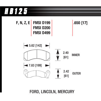 Hawk Brake Pads HB125E650 Blue 9012 Ford