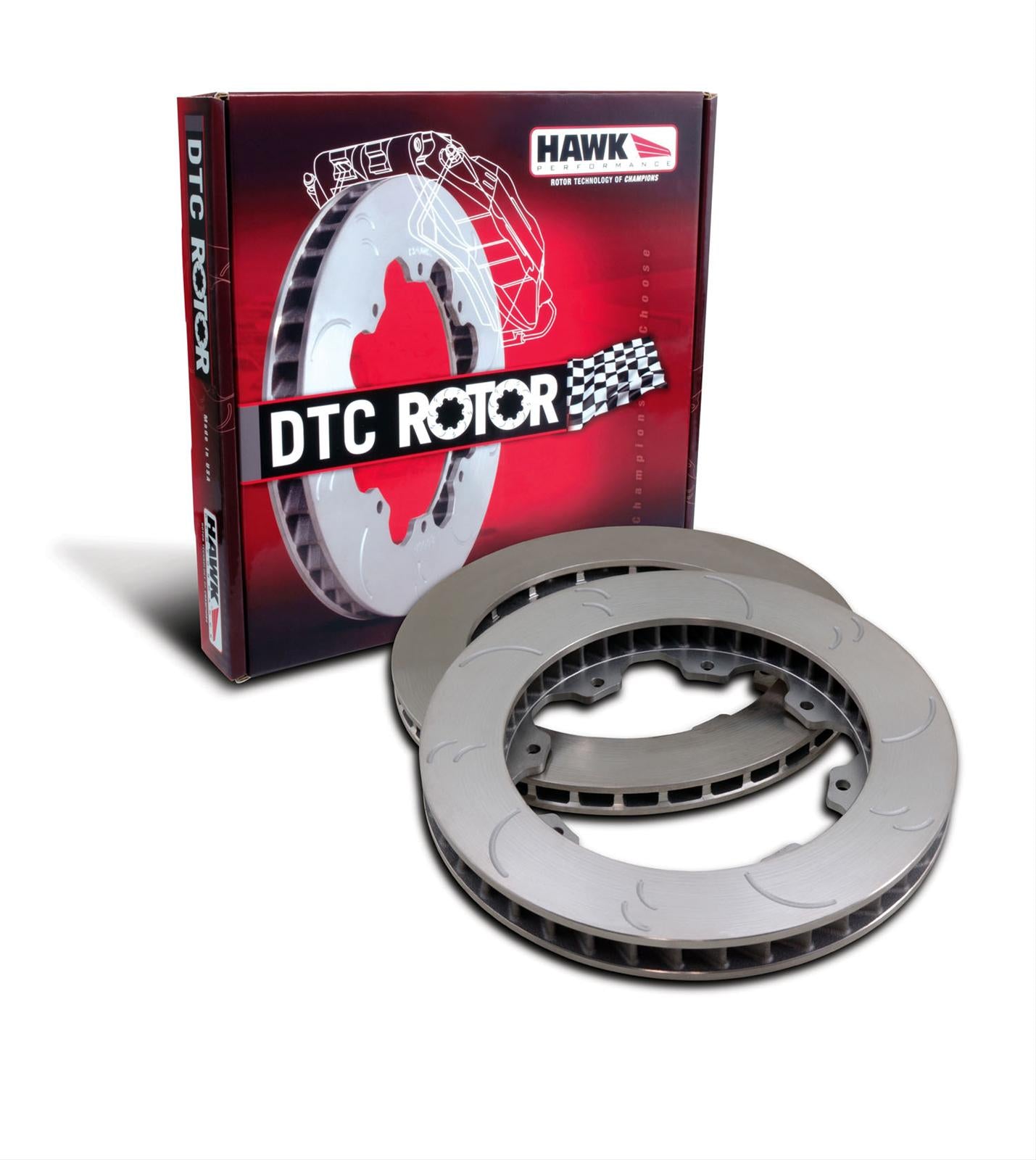 Give your car major stopping power on hard and intermediate-braking asphalt or dirt track with these high performance DTC rotors. Hawk Performance DTC rotors are engineered for exceptional wear, efficient cooling, and reduced rotating mass. These rotors are cast from a proprietary formulation of premium alloys, including long-grain carbon iron for maximum thermal stability and resistance to distortion. Additional elements include copper and molybdenum for high-temperature strength and thermal crack resistance. Their unique interior vane and mounting lug design provide structural integrity, and the front rotors feature an exclusive slot design that provides superior initial bite, release characteristics, and wear debris removal. Hawk Performance DTC rotors have a specific RMS finish that enhances the creation of a proper transfer film, specifically when you use them with Hawk DTC brake pads. These rotors are meticulously inspected for the correct balance, thickness, flatness, and runout. Hawk Performance DTC brake rotors are manufactured in the USA by ISO-certified facilities.