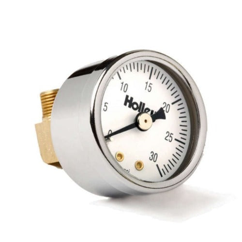 Holley 1-1/2" diameter gauges have chromed steel cases and 1/8"NPT brass fittings. They are ideal for use with Holley chromed fuel lines and fuel blocks.