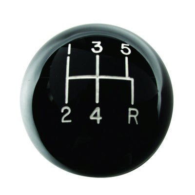 Solid high gloss, high strength plastic. 2-1/4 in. diameter with engraved inlaid shift pattern and molded-in brass thread insert. Complete with jam nut.