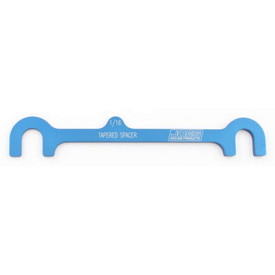 With the JOES A-Arm Spacer, you can adjust caster without putting your A-Arm in a bind. This a-arm spacer is machined out of aluminum, anodized blue and laser engraved to locate the size you need quickly. Machined in 1/32″, 1/16″, 1/8″ and 1/4″ taper. The A-Arm spacer kit contains one of each size, 1/32″ – 1/4″.