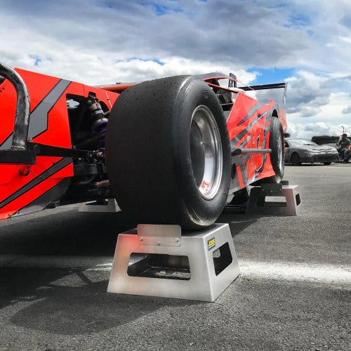 JOES 10" Aluminum Wheel Stands allow suspension adjustments while the car rests on the wheels. These high quality wheel stands allow you to get underneath your racecar and adjust the suspension with ease.