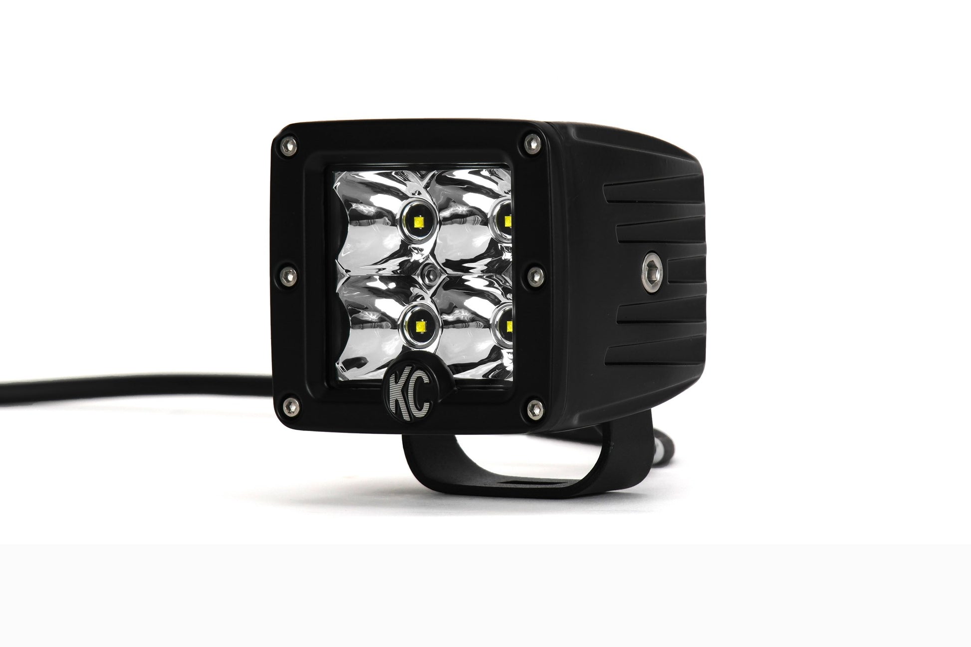 KC HiLiTES 3" C3 LED feature bright Osram LEDs in 8° Spot or 90° Flood beam patterns, inside an impact resistant die-cast aluminum design and durable Lexan lens. System includes: (2) C3 LED lights with brackets and complete wiring harness.