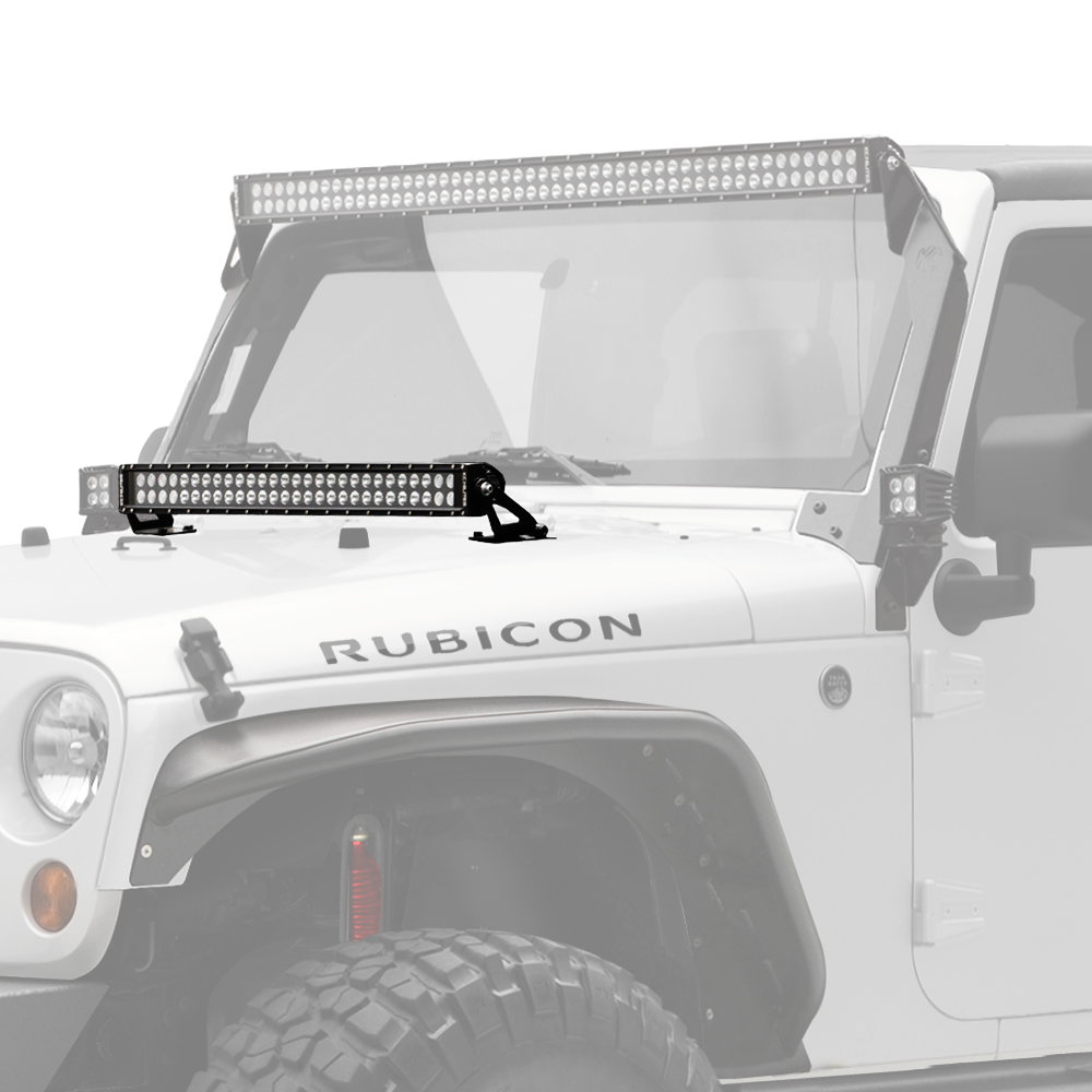 Easily install on 07-18 Jeep Wrangler JKs with hood mount brackets.