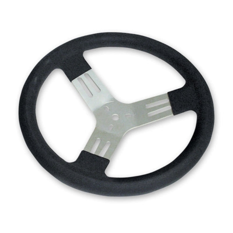 The Longacre 13" Kart Steering Wheel is 13" diameter. It is black with natural spokes, and is constructed of lightweight aluminum.
