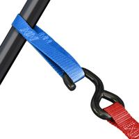 The Mac's soft loop extensions are perfect for looping around the handle bars, triple trees, or other parts of your bike, eliminating direct contact with hardware. Each loop is fabricated from 4000 lb double-stitch webbing, to meet the Mac's standard for strength and quality. Soft loop extensions also provide versatility when hauling all types of cargo. With no bulky hardware, they can easily slip through tight spaces, such as wheels, where they can act as as a wheel or axle strap. If your tie-down point is too big for the attachment fitting, you can use the soft loop first and then tie-off to your strap.
