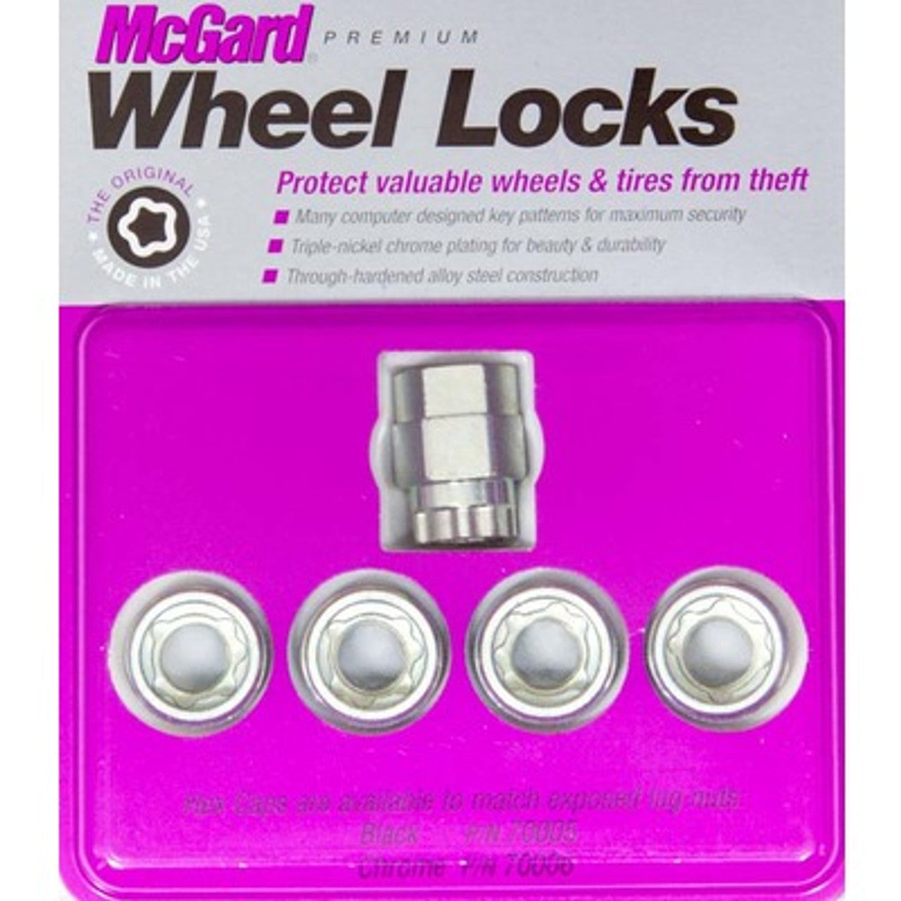 Wheel Lock - Premium - 14 mm x 2.00 Thread - Cone Seat - Open End - Key Included - Steel - Zinc Oxide - Set of 4 - Part Number: 24024 - Brand: McGard