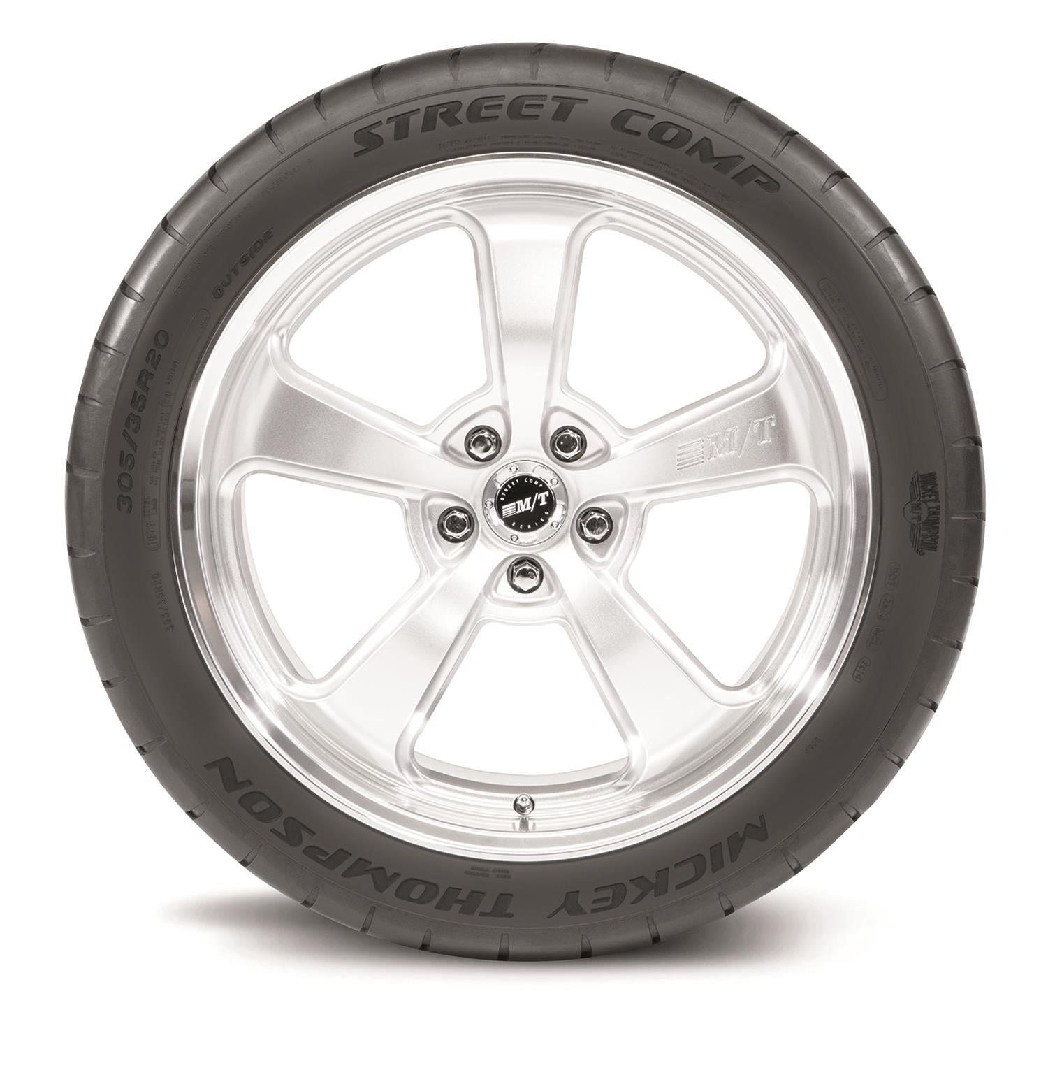 These Mickey Thompson Street Comp tires are ultra-high performance tires designed for street use. They provide incredible traction, crisp handling, and high-speed cornering ability. The tires also feature the outstanding appearance you've come to expect from Mickey Thompson. They use an asymmetrical tread design to offer superior wet and dry performance, while providing crisp and tight steering response. Mickey Thompson Street Comp tires feature smooth, easy-to-clean sidewalls, so you can keep your ride looking good all the time.