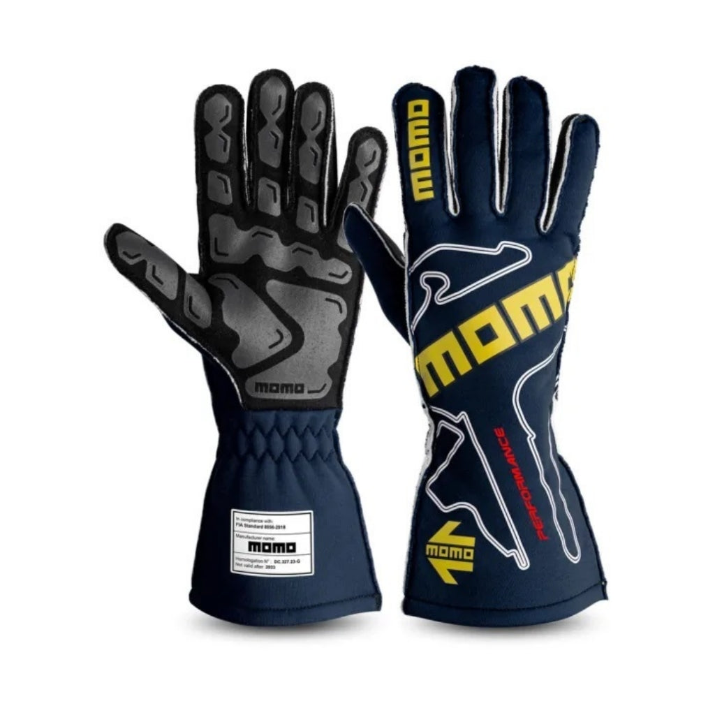 Momo Performance Gloves are single-layer driving gloves that are FIA approved. The tapered cuff provides an ergonomic fit, and seams on the outside ensure comfort when driving. The elastic closure provides for easy on and off. The silicone palm helps to increase grip on the wheel.