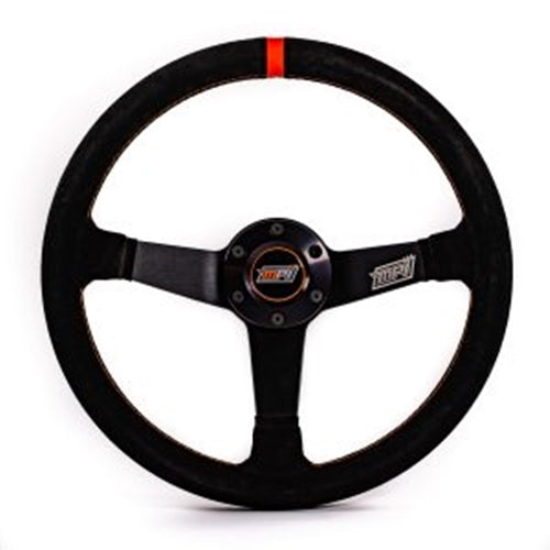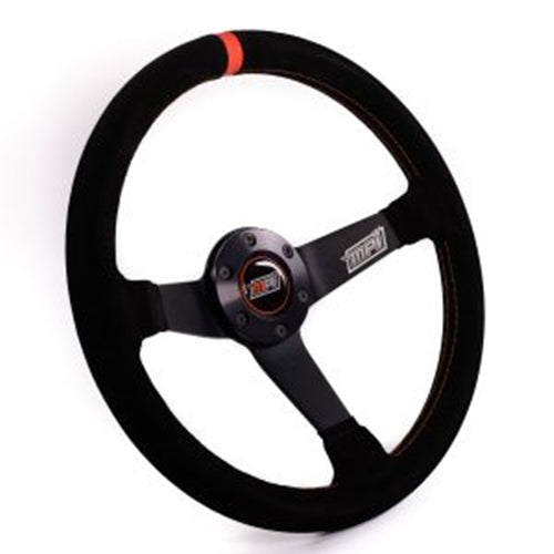 The MPI Drifting / Track Day / Rally Dirt / Off Road Steering Wheel has an aluminum frame with a bright orange stripe/marker embedded in the steering wheel body.